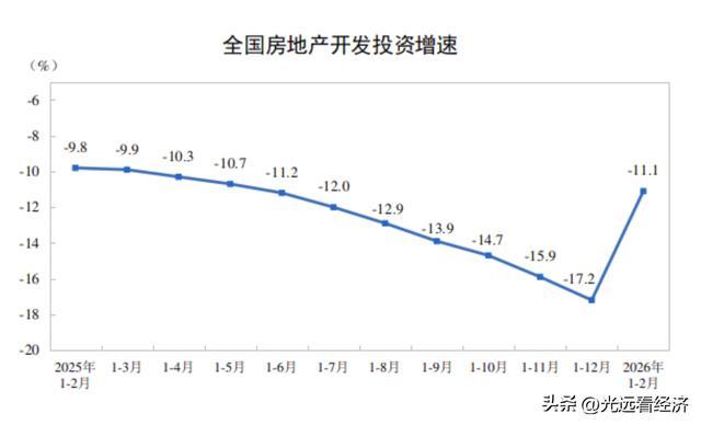 1—2月份全国房地产开发投资9612亿元,同比下降11.1%,降幅较去年全年17.3%大幅收窄6.2个百分点;其中住宅投资7282亿元,同比下降10.7%,降幅同步收窄。